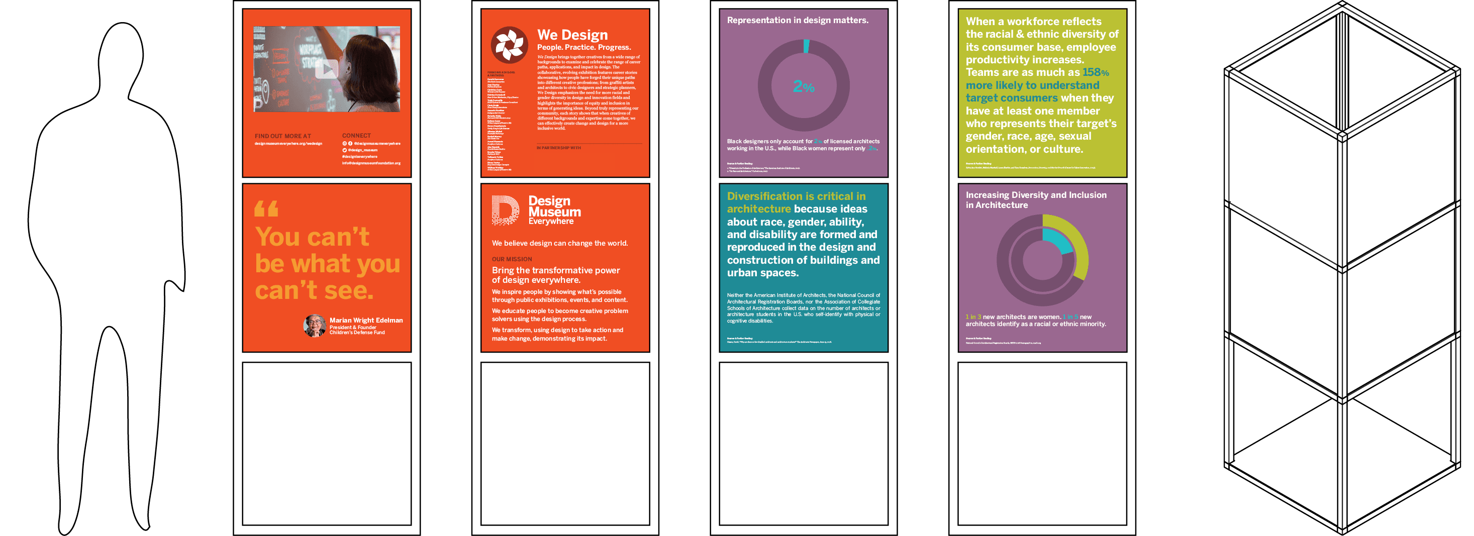 We Design is an exhibition program designed to inspire young adults, particularly women and those from historically underinvested communities of color, to explore careers in creative industries. It is expansive and highly interactive. A national design company wanted to be able to take the exhibition with them around the country to help achieve the mission. Only issue? The weeklong installation process was unreasonable.
